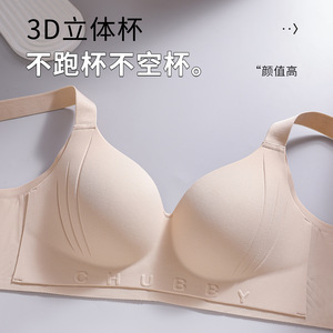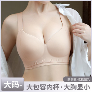 内衣女无痕大胸显小胸聚拢薄款防下垂收副乳大码胖mm一片式文胸罩