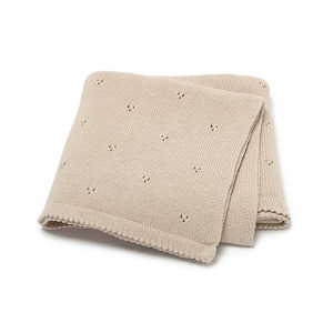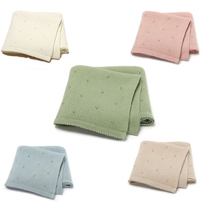 跨境temu亚马逊速卖通母婴纯棉婴儿被毛毯针织纯色镂空点被盖包被