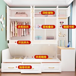 实木榻榻米床多功能儿童床储物柜组合简约小户型带书桌衣柜床一体