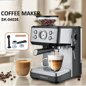 跨境家用意式咖啡机半自动萃取研磨奶泡一体小型浓缩咖啡机1.6L