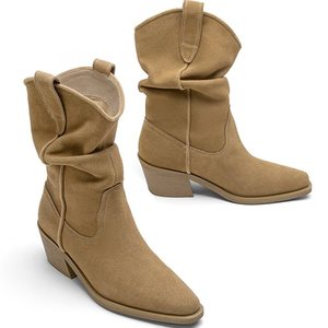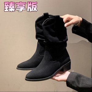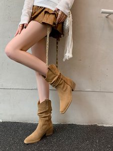 女性用プリーツパイルブーツフレンチ2025秋レトロ軽量ウエスタンカウボーイブーツ四川西部砂漠ショートブーツ女性用