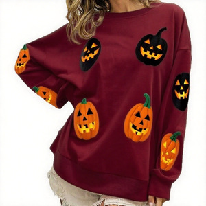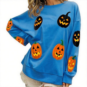 2025 アマゾン春と秋の AliExpress クロスボーダーヨーロッパとアメリカのホリデープリントトップハロウィン長袖スウェットシャツ女性のトレンド