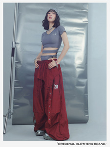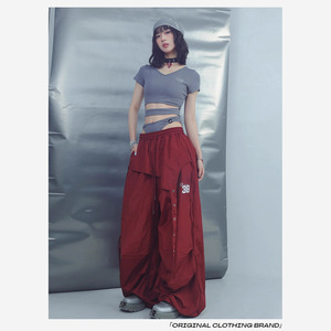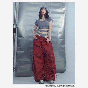 CBXLAB街舞"黑科技速干凉感系列"酒红嘻哈街头抽褶美式休闲长裤