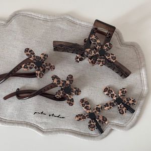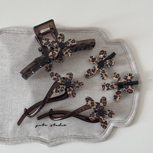 ヒョウ柄樹脂フラワーアヒルクリップ