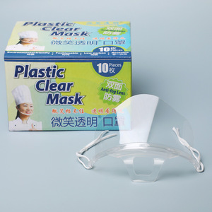 工厂新款微笑透明口罩批发802全透明塑料卫生餐饮防雾口罩定制