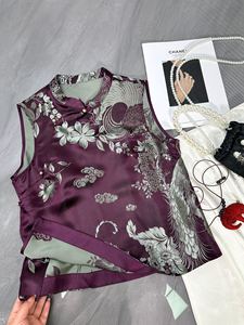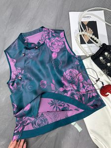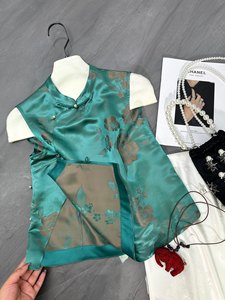 真丝老缎斜襟马甲背心真丝老缎小背心马甲新中式国风复古唐装上衣