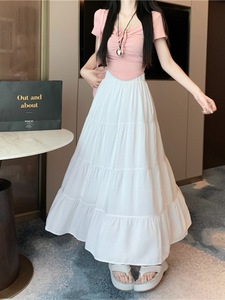 法式赫本风雪纺半身长裙女夏季薄款胖mm高腰a字垂感蛋糕半裙