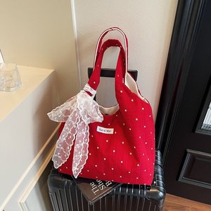 跨境日系田园风碎花帆布包女2025新款通勤大容量托特包休闲购物袋