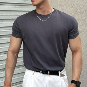 男生短袖小领口显肌肉索罗娜运动t恤收袖美式休闲棉质健身衣服男