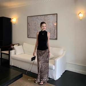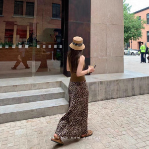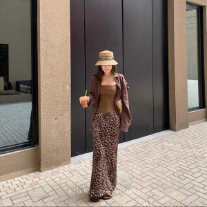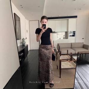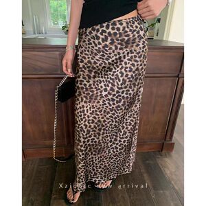 Xzichic美式豹纹印花半身裙女2025夏季新款时尚裙子斜裁显瘦长裙