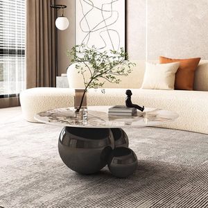 轻奢现代岩板茶几小户型客厅简约家用极简意式设计师网红圆形金属