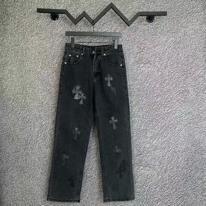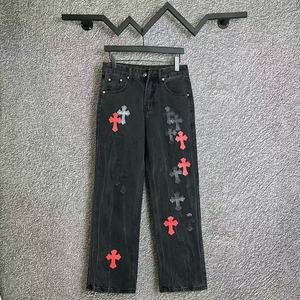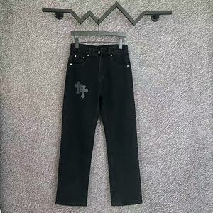 CH克罗跨境四季新款 贴皮十字架拼皮情侣款牛仔裤一件代发