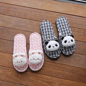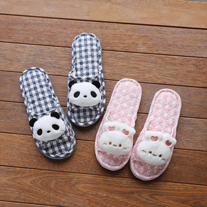 可爱熊猫棉拖鞋男女居家室内防滑地板拖鞋冬季保暖布底毛绒拖鞋
