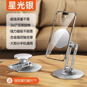 Magsafe金属可调节磁吸手机支架 360旋转可折叠直播手机支架桌面