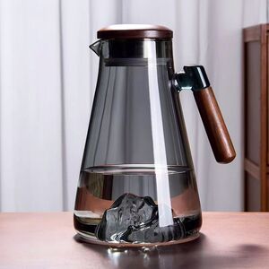 新款观山高硼硅玻璃凉水壶耐高温大容量木把新中式凉水杯冷水壶