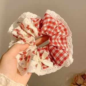 フォレストスタイルの女性用大判花柄水玉模様のヘアゴム、優しいポニーテールゴムバンド、ヘッドバンド、ボールヘアアクセサリー、ヘアロープ