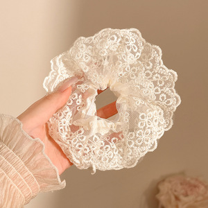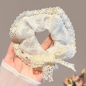 1#小花レース乳白ヘアゴム-15CM