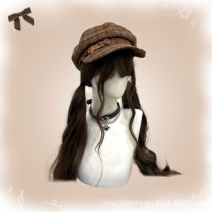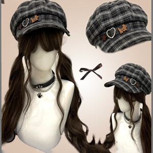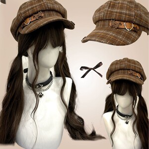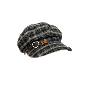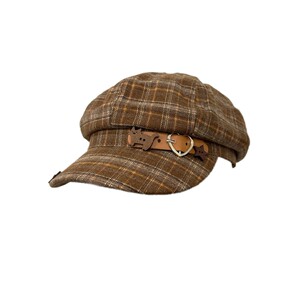 八角帽女秋冬新款复古学院格纹报童贝雷帽子可爱