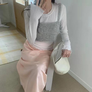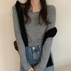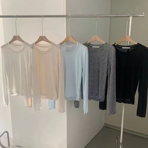 韓国東大門25年初秋PYT耳スリムで快適で万能な無地ボトムシャツ長袖Tシャツ