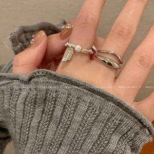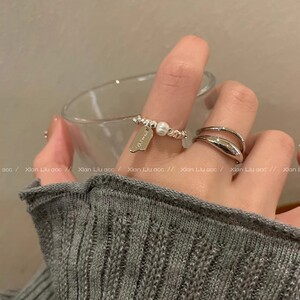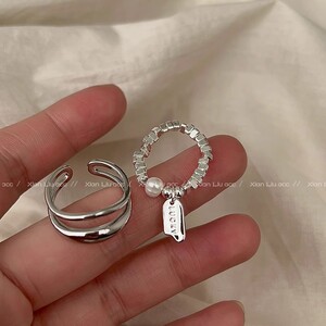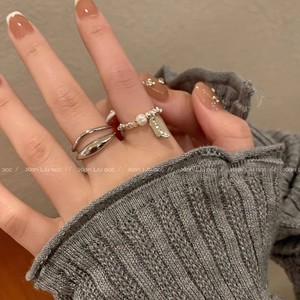 碎银子珍珠金属戒指女小众设计高级感轻奢不规则简约百搭气质指环