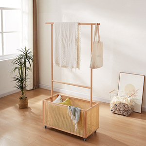 卧室衣帽架家用榉木挂衣架落地式可移动室内简易衣服收纳置物衣架
