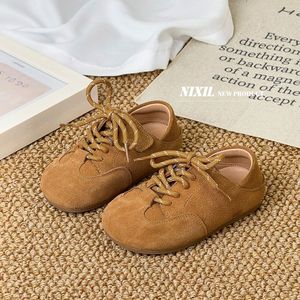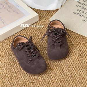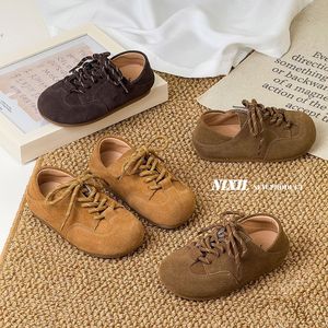2025 秋の新子供革靴韓国スタイルのレトロなベビーシューズつや消し本革ソフトソールビルケンシュトック靴男の子と女の子のため
