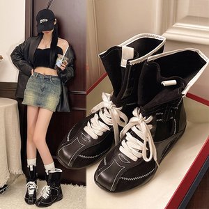 牛皮版~平底马丁靴女2025年新款百搭拳击靴系带旅游新疆西藏短靴