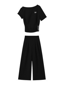 盐系炸街运动套装女夏季显瘦时尚高级感露肩短袖阔腿裤休闲两件套