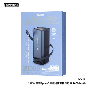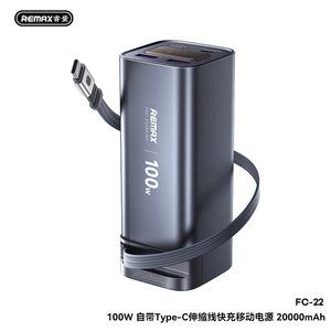 Remax自带线100W快充充电宝20000毫安大容量伸缩线移动电源3C认证