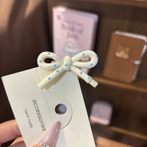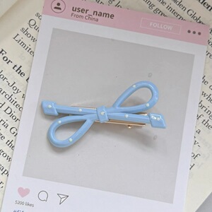 奶蓝韩系简约椭圆波点粉色鸭嘴ins春夏蝴蝶结百搭海边夹儿童头饰