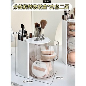 粉扑收纳盒旋转防尘梳妆台气垫口红化妆刷收纳置物架旋转收纳盒