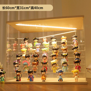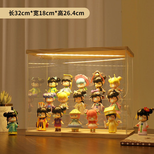 盲盒收纳展示盒泡泡玛特公仔收纳架透明亚克力带灯手办展示柜