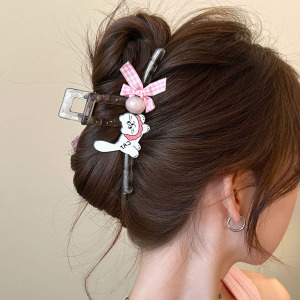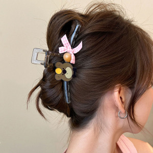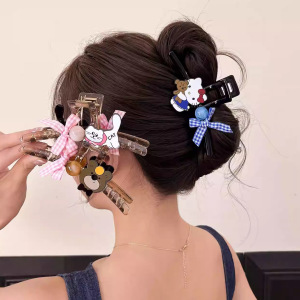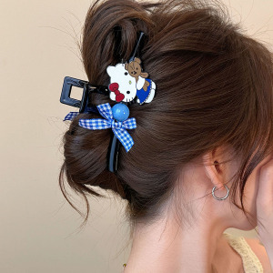 韩国卡通小猫蝴蝶结抓夹少女心高级感盘发鲨鱼夹后脑勺发卡批发