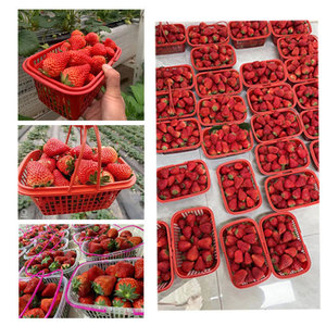 ヤマモモとブドウのピッキングバスケット、ポータブルブルーミルクティープラスチック桃園ブルービワレッドベリーバスケット、ドロップシッピング