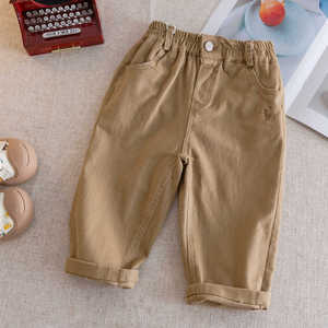 儿童长裤2025春秋新款男女童小马刺绣棉布裤宝宝纯色休闲直筒裤潮