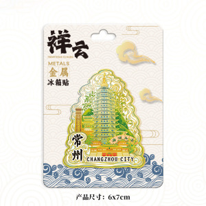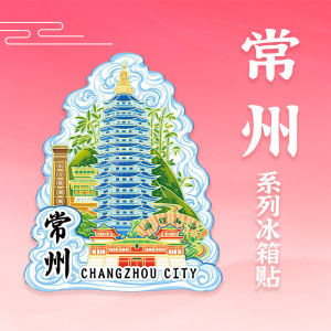 江苏常州木质冰箱贴天宁禅寺地标建筑纪念品东坡园文创金属冰箱贴