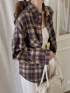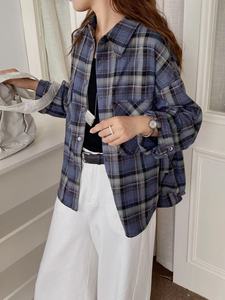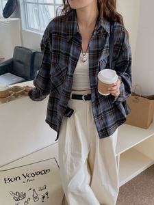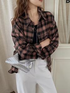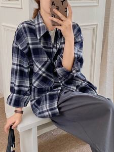 琪镌绘制秋季新款韩版宽松显瘦格子衬衫女长袖休闲百搭衬衣28303