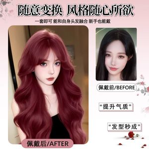 假发女复古酒红大波浪树莓红长卷发八字刘海日常红色仿真发全头套