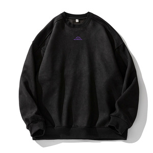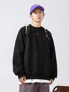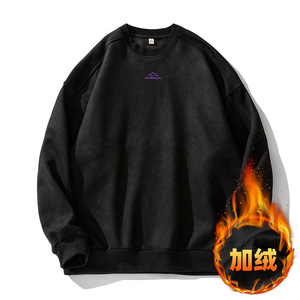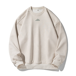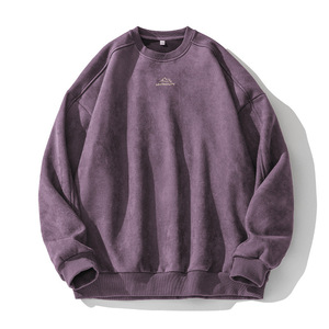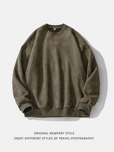 350 グラムスエードラウンドネックスウェットシャツメンズ 2025 春の新日本ヘビートレンディブランドルーズ刺繍トップジャケット