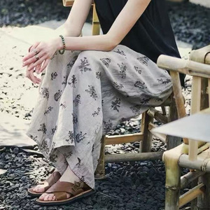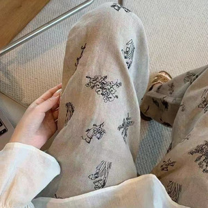 夏季 韩版宽松时尚慵懒风汉麻刺绣松紧腰直筒裤百搭休闲裤女103-1