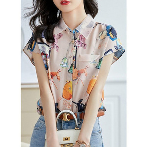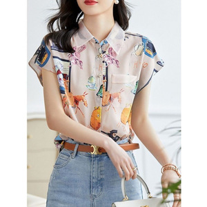2025年夏の新作、今年人気の女性用シフォントップス、半袖、ゆったり、シック、薄手のプリントシャツ、トレンド