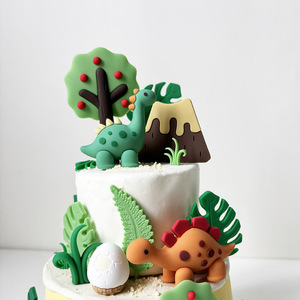 卡通可爱恐龙蛋糕装饰摆件软胶恐龙蛋树叶森系宝宝周岁生日插件