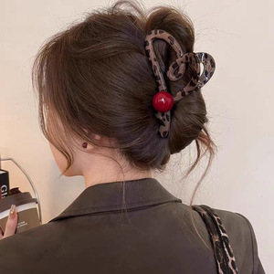 60#咖啡色豹纹蝴蝶结红珠【11cm】