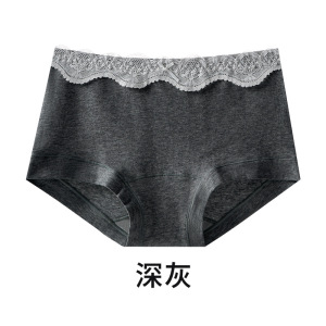 10A女士中高腰内裤全棉法式蕾丝拼接平角裤包臀版纯棉裆透气无痕