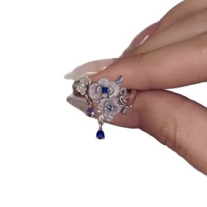 女性用のハイエンドのブラッシュシルバーローズラップリング、中世の宮殿のレトロな人差し指リング、軽くて豪華で高貴なリング