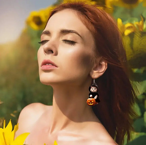 クロスボーダー新製品猫ポータブルカボチャイヤリングアクリルフラットクリエイティブハロウィン面白いゴーストゴーストイヤリング