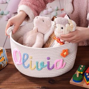 etsy パーソナライズされた手作りの文字名綿ロープ収納バスケットベビーギフトバスケットおもちゃバスケット新生児ギフト