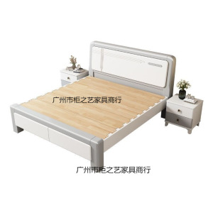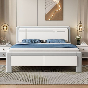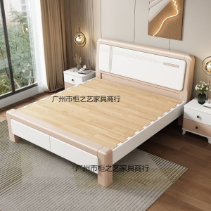 现代简约静音榫卯全实木床轻奢白色家用主卧1.5米双人气压储物床