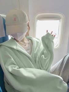 绿色卫衣外套女春秋款小个子2025早秋新款上衣连帽慵懒风开秋开衫