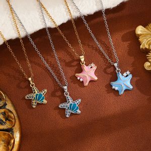 夏季沙滩风不锈钢项链铜微镶贝壳海星项链海洋度假锁骨链饰品批发